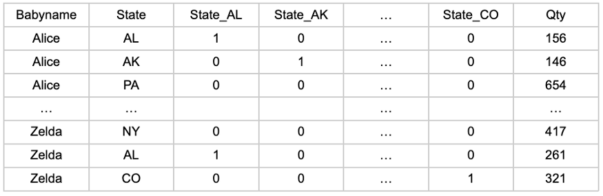 CASE WHEN State = 'AL' THEN 1 ELSE 0 END as STATE_AL,