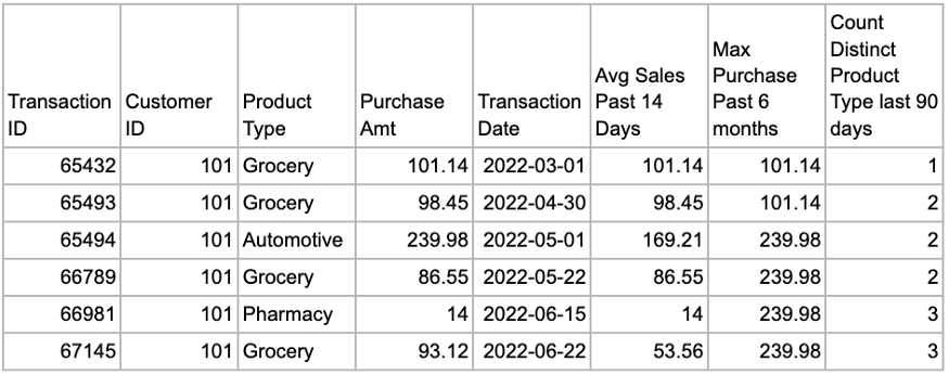 예를 들어 지난 14일 동안의 평균 판매 금액을 계산하려는 경우 창 함수를 사용하려면 모든 판매 데이터를 하루에 한 행으로 분할해야 합니다. 불행히도 이전에 판매 데이터로 작업한 적이 있는 사람은 일반적으로 거래 수준에서 저장된다는 것을 알고 있습니다. 여기에서 시계열 집계가 유용합니다. 전체 데이터 세트를 다시 포맷하지 않고도 집계된 기록 지표를 생성할 수 있습니다. 한 번에 여러 메트릭을 추가하려는 경우에도 유용합니다.